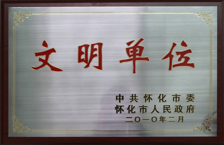 • 2010年2月公司被中共懷化市委、市人民政府評為“文明單位”